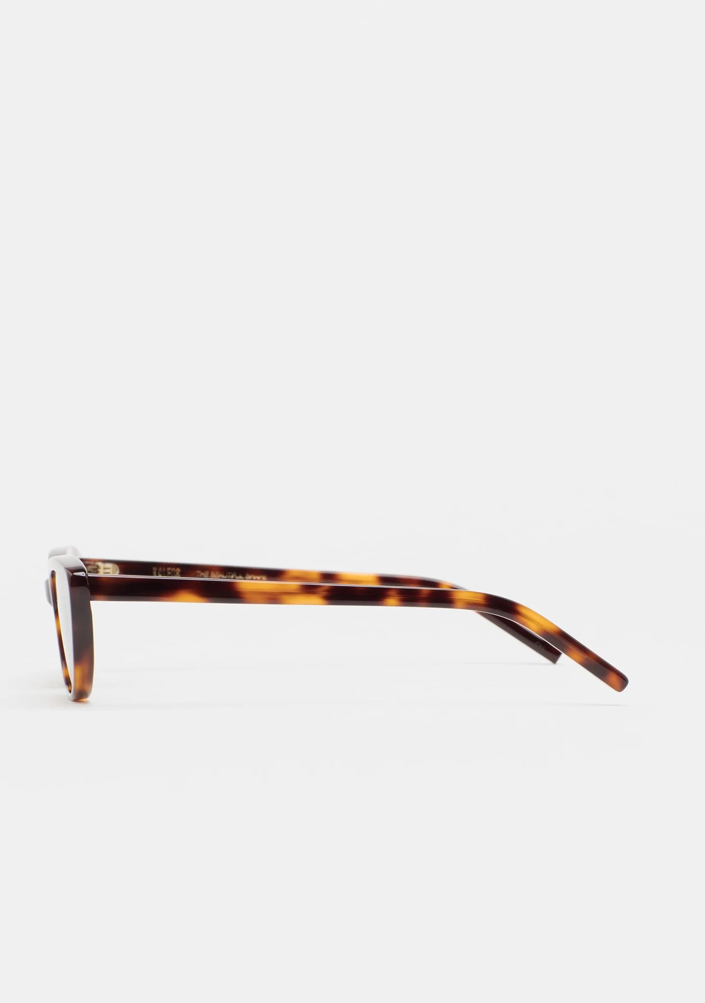 Monture cat-eye en acétate écaille translucide avec branches assorties. Verres photochromiques bruns base 2 offrant une protection UV complète et un traitement antireflet. Catégorie de verres 1–3. Plaquettes en acétate intégrées pour un ajustement fluide et confortable.